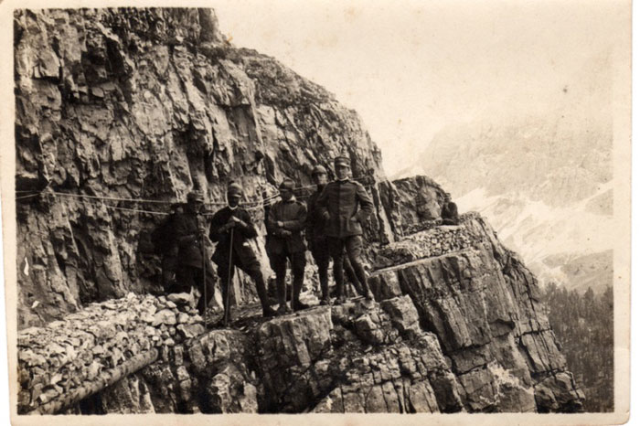 • 1914 : La première guerre mondiale donne une impulsion aux équipements. Nombre de cheminements audacieux sont alors aménagés pour faciliter le déplacement des troupes italiennes et autrichiennes qui s’affrontent pour la possession de sommets stratégiques du sud Tyrol. L’appellation Via Ferrata venait de naître.